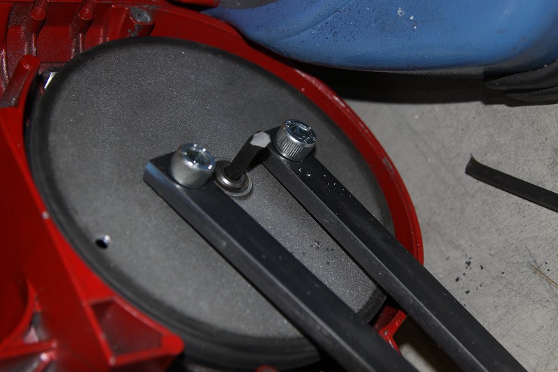 Metallbandsäge, Bandbruch - enkohi - 27.08.2013 Hallo miteinander Habe vor einiger Zeit eine Bandsäge Type FEMI 783 erstanden (Bild 1). Brauche sie zum Sägen von Stahl und Aluminium. Kurz hintereinander sind mir 2 Sägebänder gebrochen. Nebst der nicht erwartet kurzen Lebensdauer ist der Bruch des Bandes, wider Erwarten auf Rückseite beginnend, erfolgt (Bild 2). Sägeband ist ein empfohlenes Bimetall Band 1335x13x0.65. Einige nützliche Hinweise gibts im Link: http://www.holz-metall.info/shop1/artikel9438.htm Habe folgendes festgestellt: • Unabhängig von der Bandspannung läuft das Band immer nach innen. Es berührt die beiden Anlaufbolzen und hat dort in zwischen einen deutlich erkennbaren Graben gezogen (Bild 3) Ist keine Schraube, ist (war) ein Anlaufbolzen! • Die Laufrolle zeigt Verschleissspuren. Ob am Laufrad die innere Rille als Laufradflansch ausgebildet war ist nicht mehr erkennbar (Bild 4). • Die Antriebsrolle hat keine Bombierung. Tendenzmässig hat sie nach innen (zur Antriebsseite hin) eher einen grösseren Durchmesser. Dies wäre eine Erklärung für das Bestreben des Bandes nach innen zu ziehen. Dazu nun folgende Fragen: • Hat die Laufrolle im Neuzustand einen Laufradflansch? • Ist die Lauffläche der Antriebsrolle im Neuzustand leicht bombiert? • Wie bekommt man das Antriebsrad von der Welle? Hält bombenfest (Bild 5). Hoffe, dass sich einige auskennen und mir die Fragen beantworten können. Freu mich auf viele Anregungen. LG Richard Bild 1 Bild 2 Bild 3 Bild 4 Bild 5 RE: Metallbandsäge, Bandbruch - BarnyF - 27.08.2013 Zitat:Dazu nun folgende Fragen:Habe ich bis jetzt noch bei keiner Säge gesehen. Ich habe aber nur eine Hand voll Bandsägen gesehen. Zitat:• Ist die Lauffläche der Antriebsrolle im Neuzustand leicht bombiert?Normalerweise sollten beide Räder bombiert sein. Zitat:• Wie bekommt man das Antriebsrad von der Welle? Hält bombenfest (Bild 5).Normalerweise nimmt man dafür einen Scheibenabzieher. Du kannst dafür in die beiden Löcher packen. Fluchten die beiden Räder? Sind die beiden Achsen parallel oder läuft eines etwas schräg? RE: Metallbandsäge, Bandbruch - K E - 27.08.2013 Hallo Bastler also bei mir ging regelmäßig das freilaufende Rad fest, bis ich eine Büchse ein setzte aus Messing. Dann die Kugellager nicht so straf einstellen. Sägedruck nicht so viel Vor allen habe ich eine Späne Abstreifer gebaut. Aber ich entlaste nach jeden Sägen das Band. Seid ich das getan habe , hat es keins mehr zerlegt. Grüße RE: Metallbandsäge, Bandbruch - karamo - 27.08.2013 Hallo, (27.08.2013, 20:59)BarnyF schrieb:Bei meiner Bernado EBS 115 haben beide Räder einen Bund !!!Zitat:Dazu nun folgende Fragen:Habe ich bis jetzt noch bei keiner Säge gesehen. Sie sind NICHT bombiert! Es könnte sein, dass sie ganz wenig "schräg" sind, also eine leicht kegelförmige Lauffläche haben und keine zylindrische. Durch die massive Verdrehung des Sägebandes würde es sich nicht von selber auf den Rädern zentrieren. LG Wolfgang RE: Metallbandsäge, Bandbruch - enkohi - 28.08.2013 Hallo zusammen Danke für die ersten Antworten. Hallo Bernhard (BarnyF) wie genau die beiden Räder fluchten lässt sich im Moment noch nicht feststellen. Dazu muss ich erst mal das Antriebsrad von der Welle kriegen. Was man feststellen kann ist, dass das Laufrad im Verstellschlitten einige Zehntel Spiel hat. Eine Abzugsvorrichtung muss ich mir noch basteln. Klaus (KE) das mit dem Entspannen des Bandes ist sicher eine gute Idee. Als Abstreifer gibt es einen Filz der U-förmig ums Sägeband angeordnet ist. Wie sieht dein Eigenbau- Abstreifer aus? Wolfgang (karamo) kann auch zumindest am Laufrad eine gewisse Konizität feststellen. Auch ein Bund wäre in diesem Fall wahrscheinlich. Für einen Bund spricht auch die Sägeblattbreite. Mit Bund ist das Sägeband so positioniert, dass das 13 mm Breite Band mit den geschränkten Zähnen ca. 1 mm ausserhalb der Lauffläche zu liegen kommt. Vielleicht drehe ich das Laufrad etwas kleiner im Durchmesser damit der Bund wieder wirksam wird. Beim Antriebsrad könnte ein Bombieren des Gummibelags helfen das Sägeband mittig zu positionieren. Was meint Ihr dazu? LG Richard RE: Metallbandsäge, Bandbruch - K E - 28.08.2013 Hallo miteinander, bei mir ist über die Kugellager ein Schutz aus Blech , den habe ich einfach 5 Lagen 5 mm Filz darunter geklemmt . auch zum schmieren gut. Bei meiner senkrechten Band säge läuft das Band durch eine Messingbürste. Meine Säge hat eine starken Bund und auch eine Schräge. Ich denke das es das Entspannen gebracht hat, das die Bänder nicht mehr zerreißen. Da ich die Bänder aus dem Nachbarort bekomme, schweißen sie die einfach wieder zusammen. Grüße RE: Metallbandsäge, Bandbruch - enkohi - 17.11.2013 Möchte den Beitrag noch fortsetzen. Hatte noch höhere Prioritäten in anderen Bereichen. Das Laufrad habe ich leicht überdreht um den seitlichen Anschlag wieder zu gewährleisten. Der Durchmesser wurde ca. 3° konisch bearbeitet, damit das Sägeband beim Sägevorgang Richtung Laufradanschlag bewegt wird. Die Gummischicht am Antriebsrad war etwas eingedrückt oder zerschlissen. Der Durchmesser hatte eine leicht konkave und konische Form. Dadurch wurde das Band vermutlich sehr kräftig an die harten Anschlagbolzen gedrückt. Man sieht auch deutliche Verschleissspuren an diesen Bolzen. (Bild 3) Dies dürfte vermutlich die Ursache für die Rissbildung auf der Rückseite des Sägeblatts gewesen sein. Das Antriebsrad hab ich leider nicht entfernen können. Ein Anruf bei der zuständigen Servicestelle von Femi brachte einiges an Informationen. Das gummibeschichtete Alu Rad ist mit einem Linksgewinde auf einer Stahlwelle verschraubt. Es soll sehr gut auf der Welle halten. Um dieses Rad zu entfernen verwendet man ein Spezialwerkzeug mit langem Hebelarm das in die Beiden Bohrungen im Rad passt. Als Gegenhalterung setzt man ein Zahnrad auf der Getriebeseite so ein, dass es sich mit dem Gehäuse versperrt. (Bild 6