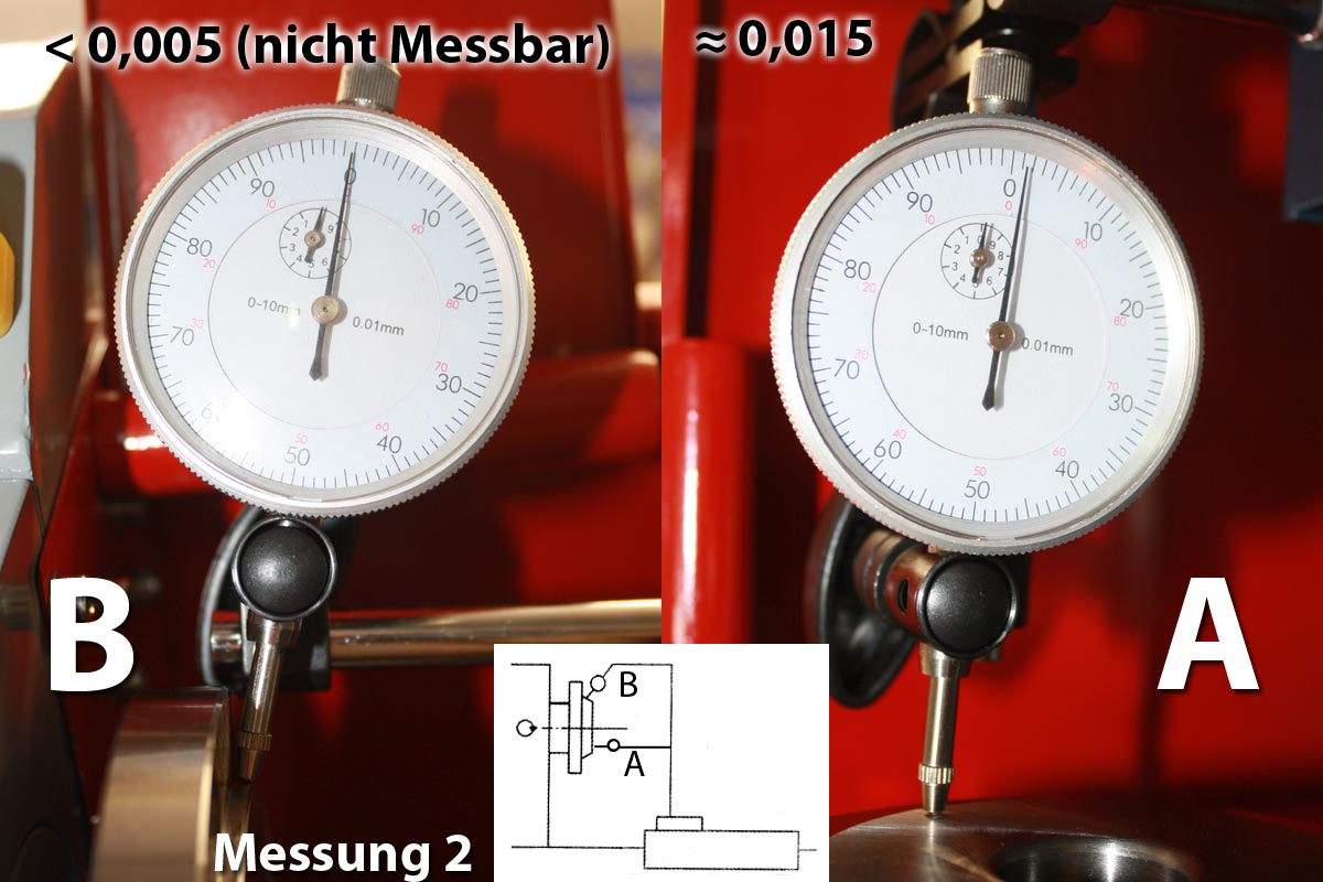 Messung 2-B: Hier das gleiche. Messuhr bewegte sich nur, wenn ich den Flansch drehte, hörte ich auf sprang die Uhr wieder auf 0 zurück.