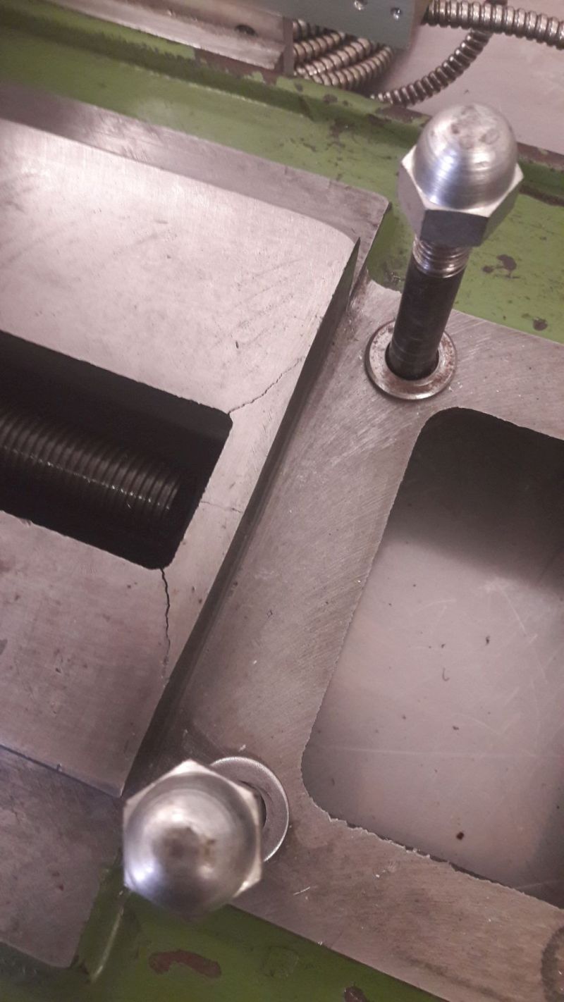 schon so erworben. Er ist in einem guten Zustand und lässt sich über alle Fahrwege ohne zu klemmen durchkurbeln. Lediglich am Ende der y-Achse ist der Gusskörper angebrochen, was aber mehr ein Schönheitsfehler ist, da nicht für die Funktion relevant. (siehe Bild)