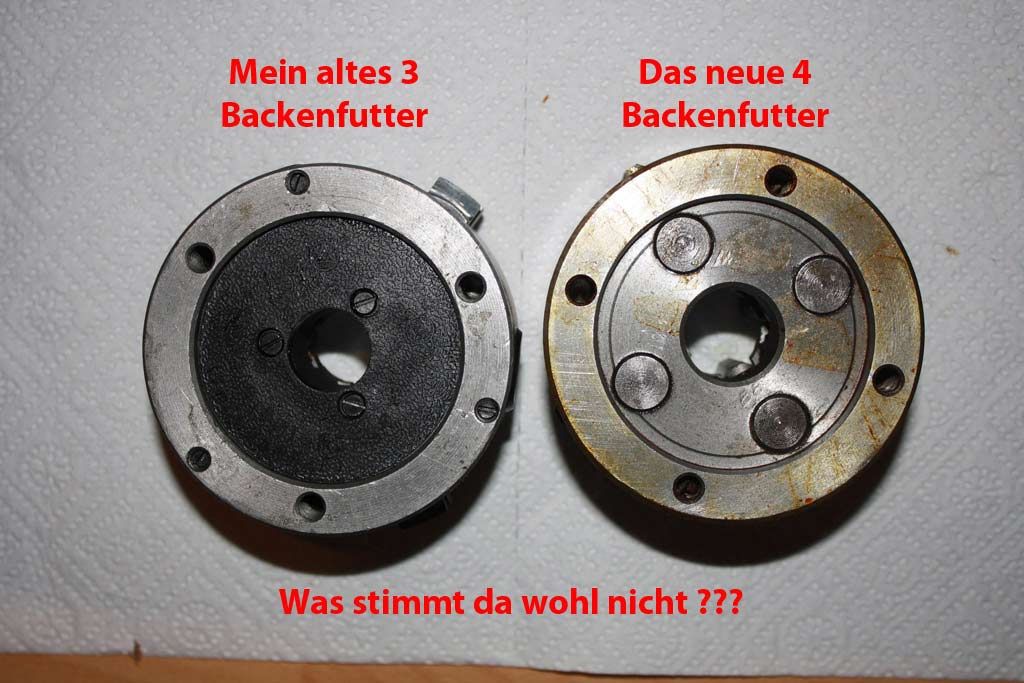 Ja genau, das 3 Backenfutter hat 3 Löcher, der Futterflansch hat auch nur 3 Löcher und das neue 4 Backenfutter hat , na klar warum sollte auch mal was direkt funktionieren, natürlich 4 Löcher !