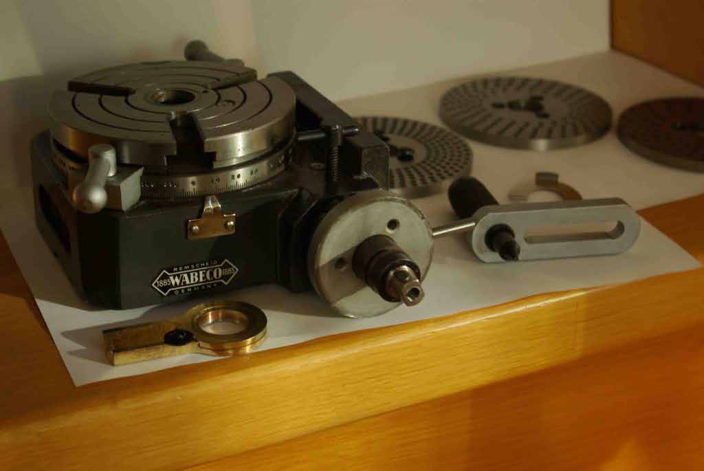ich habe seit einiger Zeit für meine Wabeco Fräse einen (Vetex) Teilapparat (D 110). Den habe ich ohne Indexeinrichtung gekauft. Übersetzung der Kurbel 90:1. Ist für mich ein super Teil - sehr genau!