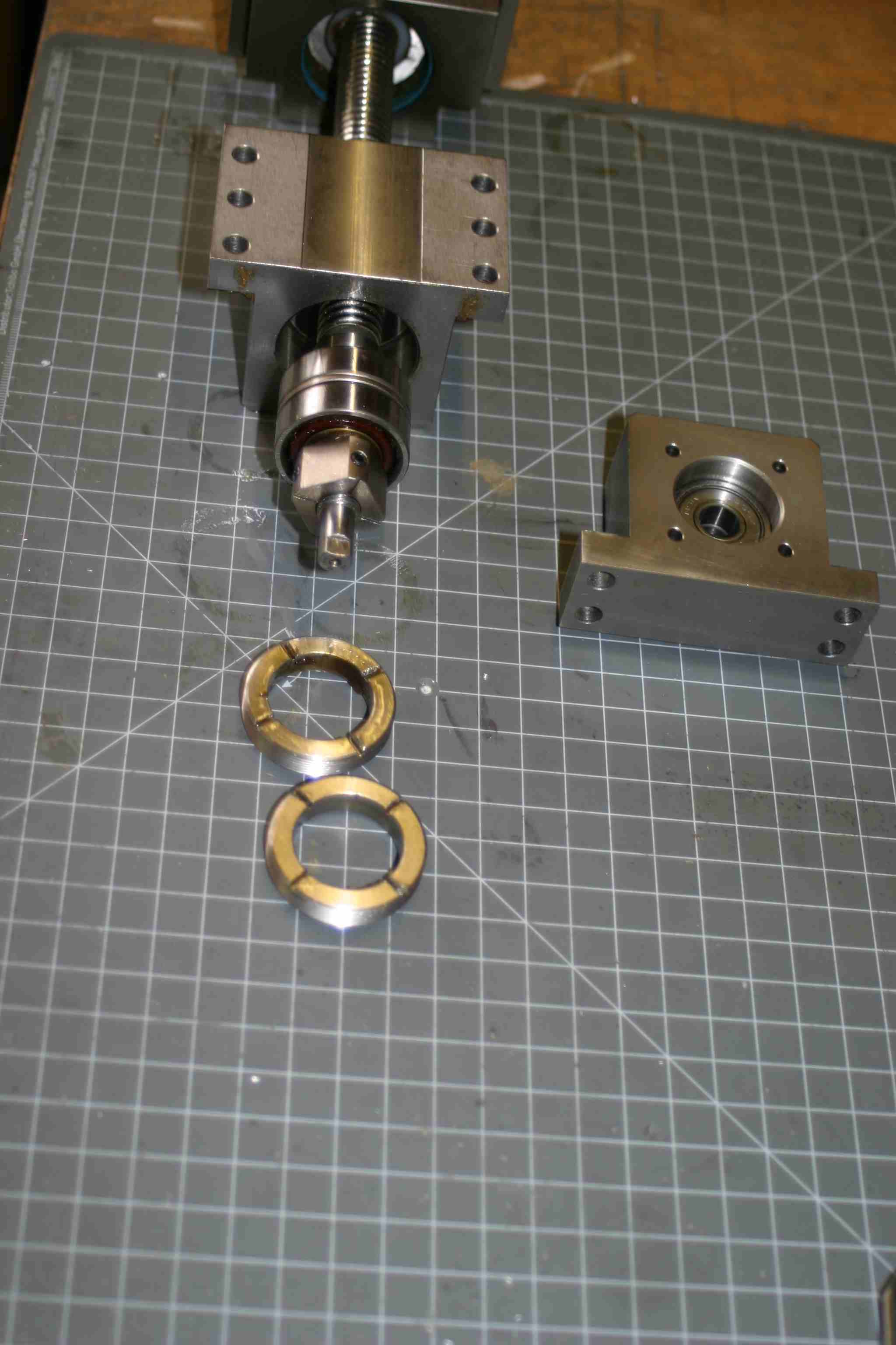 sie hat sich doch gelöst. Darunter kam nochmal eine zum Vorschein, die THK Leute sind eben doppelt genau. Die Vierkantmutter war wie erwartet mit nicht einer sondern vier Inbusschrauben gesichert.
