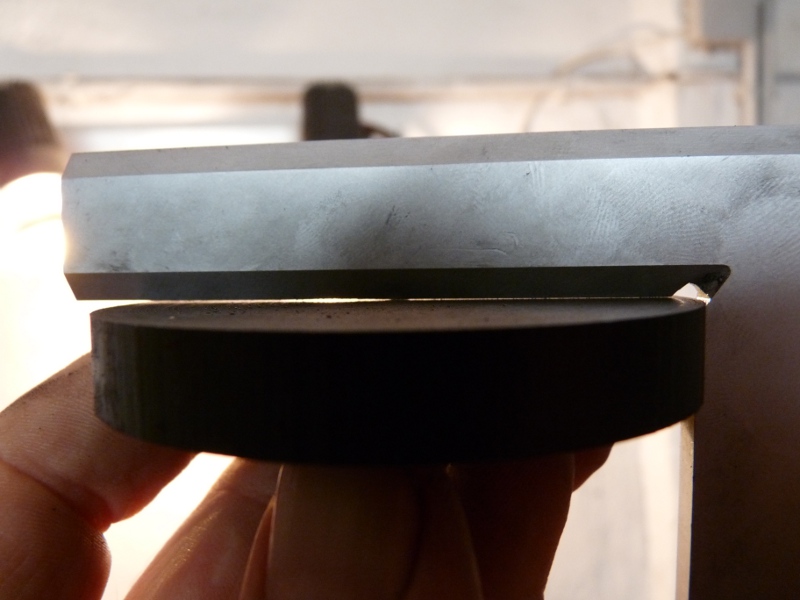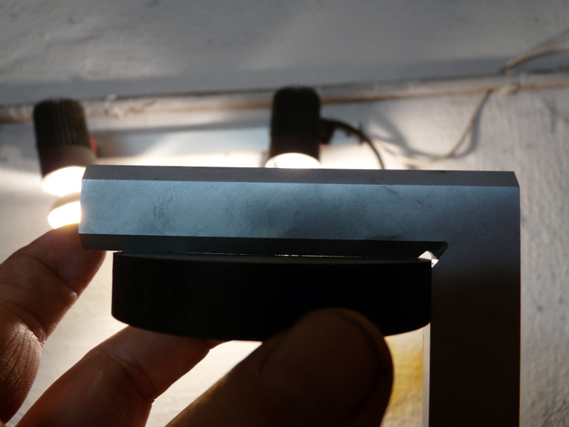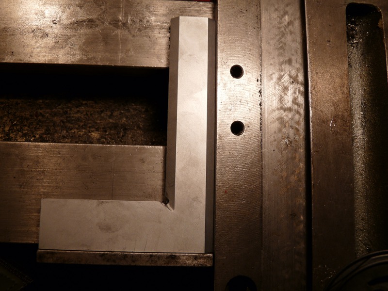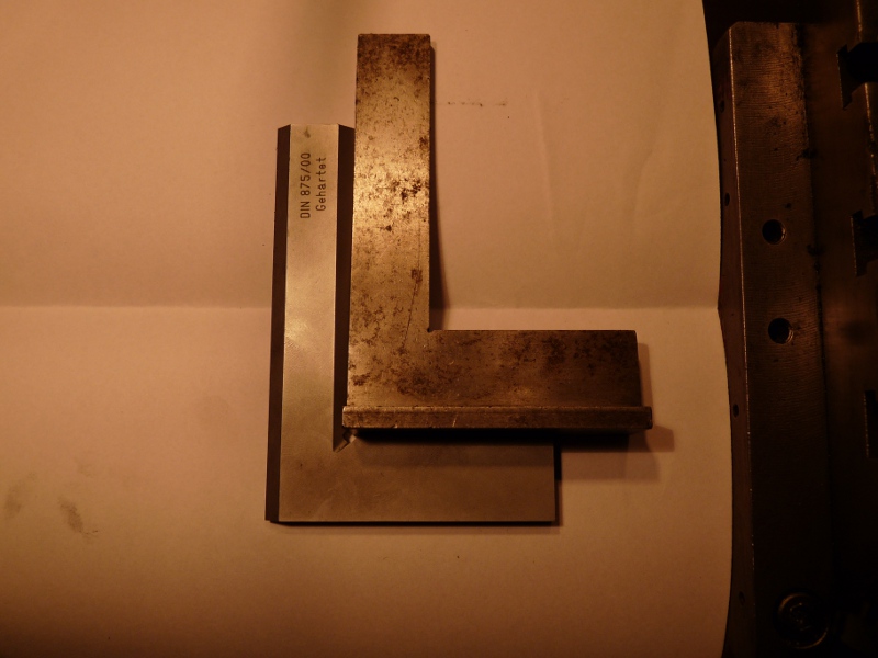 Jetzt habe ich den Winkel angelegt(Drehbankbett gegen Schlosskasten), die Keilleisten eigestellt und bin immer wieder vorsichtig auf den Winkel zugefahren, bis das Bild dann entstand, also kein Spiel, Rechtwinkligkeit zum Drehbankbett und der Schlosskasten-Schlitten lässt sich noch fahren.