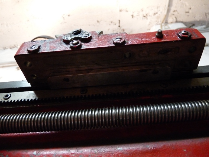Der Schlosskasten-Schlitten von unten, dabei fiel mir auf, dass die Einstellung des Spiels mit den Keilleisten nur auf einer Bettschiene realisiert wird und das die Keilleiste zwei Einsenkungen hat, die vorrangig für die Einstellung des Spiels und der Winkligkeit des Schlosskastenschlittens sind. Aha ....Nein!