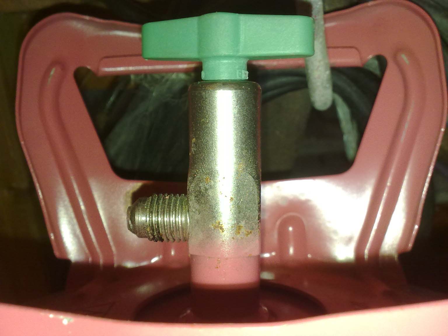 Leider gibt es für das Gewinde keine Muffen oder ähnliches deshalb habe ich Heute mal versucht die Flasche einfach über einen Schlauch zu füllen. Dazu habe ich den Schlauch einfach mit einer Schlauchschelle am Gewinde befestigt. Leider lässt sich die Flasche trotzdem nicht richtig füllen, weil in dem Hahn eine Art Ventil eingebaut ist. Deshalb habe ich den Hanh nun einfach abgesägt. Jetzt will ich ein neues Stück Rundstahl mit 1/4 Zoll Gewinde einschweißen und Fertig. Vielleicht hat jemand lust das Teil für mich zu fertigen, weil ich keine Drehmaschine habe. Material und 11,8 mm Bohrer könnte ich liefern.