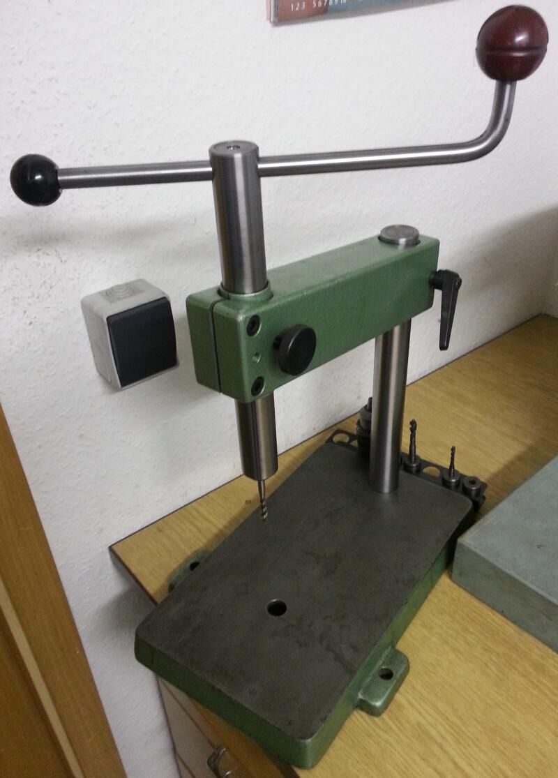 Gewindebohrer - bzw. den Kernlochbohrer in die Standbohrmaschine sorgt für exakte Führung, Antrieb natürlich per Hand.