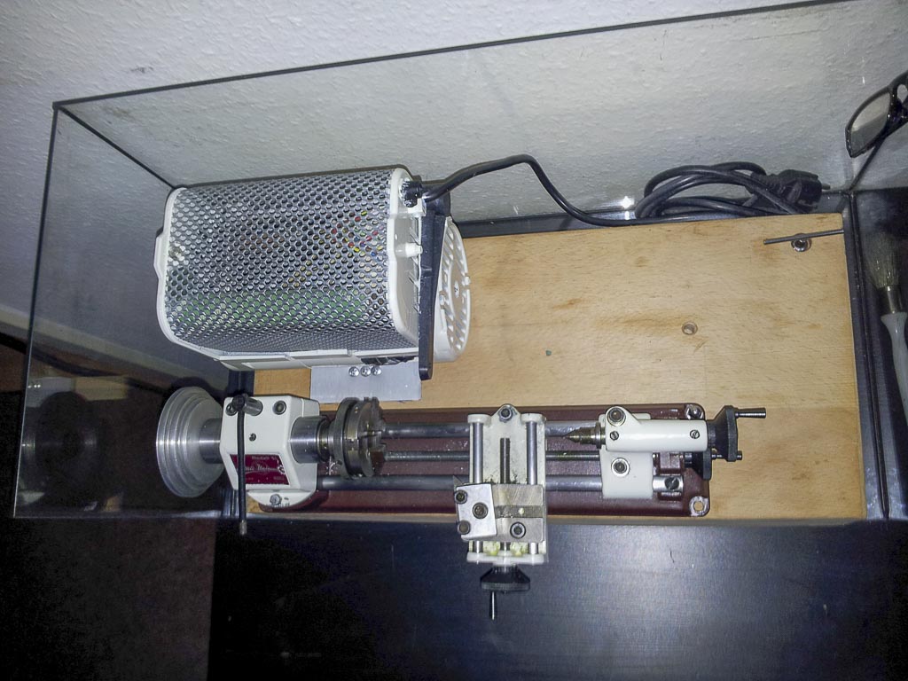 Stufenlose Drehzahlregelung - ThomasKöln - 26.03.2017 Hallo Forum, Ich habe meine Emco Unimat SL mit einem stärkeren Moretti Industrie-Nähmaschinenmotor ausgestattet,da dieser normalerweise unter Tisch mit einer Zugkette und einem Pedal betrieben wird muss ich mir etwas bauen um die Drehzahl zu regeln,da ich ihn an der Maschiene anders verbaut habe.Der schwarze Hebel den ihr auf den Bildern seht wird eigentlich mit einer Kette nach unten gezogen um die Drehzahl zu steigern.Jetzt ist der Motor aber anders herum montiert so das ich den Hebel nach oben ziehen muss bis er an die nittige kleine Sechskantschraube anschlägt,dann ist das Maximum erreicht.Ich brauche jetzt eine Idee für eine simple Lösung den Hebel nach oben zu bewegen so das er in beliebiger Position fixiert ist.Ich selber habe auch einige Varianten,möchte aber erst mal schauen ob ihr eine Lösung habt,yielleicht hat ja einer von euch schon mal ähnliches mit einem solchen Motor gemacht.Er hat übrigens 250 Watt-220 volt-7000Umdrehungen max und ist in der Leistung am Motor selber auch schon 3fachregelbar,150-200-250 Watt. Ich hffe ich habe mich verständlich ausgedrückt und ihr könnt das Problem Anhand der Bilder nachvollziehen.Wäre toll wenn Ihr mir helfen könntet, Grüße Tom RE: Stufenlose Drehzahlregelung - capstan - 27.03.2017 Hallo, wenn Du unbedingt diesen alten Drehzahsteller weiterverwenden willst, könntest Du den Hebel um 180° versetzt wieder aufsetzen und alles wäre beim Alten. Bernd RE: Stufenlose Drehzahlregelung - dampfmodell - 27.03.2017 Hallo, was befindet sich unter dem Gitter oben am Motor? Eventuell Teile die auf Metallspäne hässlich reagieren (Rauchzeichen?)? Ich würde mir die Montage so noch einmal überlegen - so fliegen die Späne direkt auf und in den Motor - das geht auf die Dauer nicht gut. Ich würde am Hebel entweder den Rücksteller ausbauen oder eine Klemmung vorsehen. Fürs Einschalten würde ich einen eigenen Schalter vorsehen. Gruß, Josef RE: Stufenlose Drehzahlregelung - ThomasKöln - 27.03.2017 Das mit den Spänen ist eine Überlegung wert aber danit ist mein Problem des Gasgebens noch nicht gelöst.Wenn man den griff der unter Federspsnnung steht nach oben zieht bewegt er an der linken Seite einen Klotz unter Federspannung nach oben welcher dann die rostfarbenen Metallstreifen von unten nach oben gegeneinander drückt,wenn alle zusammen kommen ist das höchste drehzahl.Ich habe diese Plätchen mit einem roten Pfeil markiert.Ganz lings hängt auch noch ein bremsklotz für den Motor am Hebel,das dickere grüne im Vordergrund ist ein kondensator nehme ich an.Ich würde den Hebel gerne deaktivieren möchte mir aber die Möglichkeit der Regulierung der Drehzahl nicht wegbauen.Auch weiss ich nicht was passiert wenn der Bremsklotz für den Motor deaktiviert ist. Grüße Tom RE: Stufenlose Drehzahlregelung - dampfmodell - 27.03.2017 Hallo Tom, das grüne ist eine Widerstandskaskade und das Stufenrelais (die Plättchen) schließt die Kaskade stufenweise kurz. Aus meiner Sicht ist das eine Anlaufsteuerung und keine dauerhafte Drehzahlregelung. Ich würde das Teil nicht als Drehzahlregelung einsetzen, das gibt unter Last über kurz oder lang den Geist auf. Der Aufbau wie du ihn vorgesehen hast ist lebensgefährlich - ein langer Span der das Gitter durchdringt und du stehst unter Strom. Wenn du den Motor unbedingt verwenden willst, dann nur mit voller Drehzahl (und eigenem Schalter wie schon von mir beschrieben) und einer spänefesten Abschirmung (genügen Platz um das Gitter zur Kühlung lassen). Gruß, Josef RE: Stufenlose Drehzahlregelung - capstan - 27.03.2017 Hallo Tom, entledige den Motor von diesem altmodischen Widerstandsanlasser samt Gehäuse, dann ist das Problem mit den Spänen in der Elektrik vom Tisch. Kaufe einen fertigen elektronischen Drehzahlsteller entsprechender Leistung als Vorschaltgerät und betreibe den Universalmotor damit, so hast Du alle Probleme elegant gelöst. Bernd RE: Stufenlose Drehzahlregelung - ThomasKöln - 27.03.2017 Hallo Josef und Bernd,das ist beides sehr pausibel und so werde ich es machen,so habe ich das Span Problem und das Drehzahlproblem gelöst. @Berndt könntest du mir den sagen was ich für ein Vorschaltgerät brauche,ich habe so von Elektrik null Plan. Der Motor hat 220 Volt,50 Herz, 250Watt,ist umpolbar (rechts-linkslauf) und macht 7000 Umdrehungen Danke Grüße Tom RE: Stufenlose Drehzahlregelung - capstan - 28.03.2017 Hallo Tom, im einfachsten Fall genügt solch ein Teil: http://www.ebay.de/itm/4X-Drehzahlsteller-Spannungsregler-2000W-50-220V-AC-SCR-Dimmen-Drehzahlregelung-/292056663298?hash=item43ffef0502: http://www.ebay.de/itm/Osaga-Leistungsregler-Drehzahlsteller-Drehzahlregler-/231665516357?hash=item35f0573f45:g:HAgAAOSwuAVWzvvQ http://www.ebay.de/itm/Elektronischer-Drehzahlregler-2000-Watt-230Volt-max-16-Ampere-/172594808370?hash=item282f73c632:g:PDgAAOSwnHZYgpOY http://www.ebay.de/itm/Elektronischer-Drehzahlregler-Dimmer-2000-Watt-230Volt-Innenbereich-/172594810532?hash=item282f73cea4:g:do8AAOSwsW9YwtjB Bernd RE: Stufenlose Drehzahlregelung - ThomasKöln - 29.03.2017 Hallo Bernd,danke für die Hilfe,ich hab mich für Vorschlag Nr.1 entschieden.Nicht weil er am preswertesten ist sondern weil ich Ihn am besten integieren kann,ich hab den Regler eben bestellt.Ich lass von mir hören und sage bescheid ob alles geklappt hat.kann ich jetzt auch den Anlasskondensator und diese meschaniche Motorbremse plus die jetzige Verkabelung einfach rausschmeissen,also nur Motor mit Zuleitung behalten ?Und noch eine Frage,wenn ich dann mit dem Poti einfach nur die Spannung reduziere,reduziere ich dann nicht automatisch auch die Kraft,also den Drehmoment.Weil in diesem Fall mir ja die Umrüstung von originalmotor auf diesen Motor dann ja gar nichts bringen würde. Ich frage nur zu meinem Verständnis weil ich davon gar keine Ahnung habe. Grüße Tom RE: Stufenlose Drehzahlregelung - capstan - 29.03.2017 (29.03.2017, 09:53)ThomasKöln schrieb: kann ich