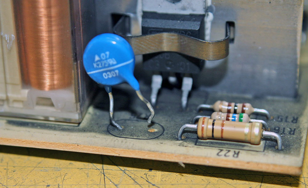 Bevor Du die Platine ganz ausbaust, solltest Du die Spannung im Betrieb am Varistor messen.