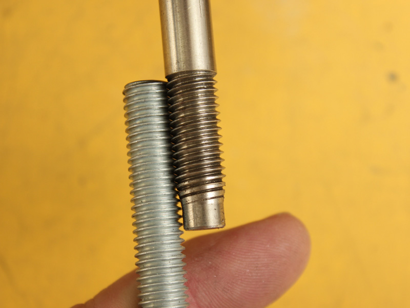 Wenn man allerdings eine metrische Gewindestange daneben anhält, passt zwar die Steigung, trotzdem schaut das so aus als ob das Gewinde des Kopfes etwas steiler wär.