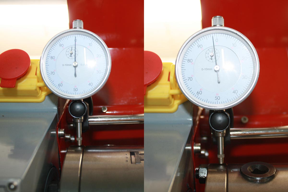 Wo muss ich meine Messuhr dran halten (muss ja irgendwo an den Backen dran und nicht am Futtergehäuse) um zu sehen wie genau/ungenau es ist ?