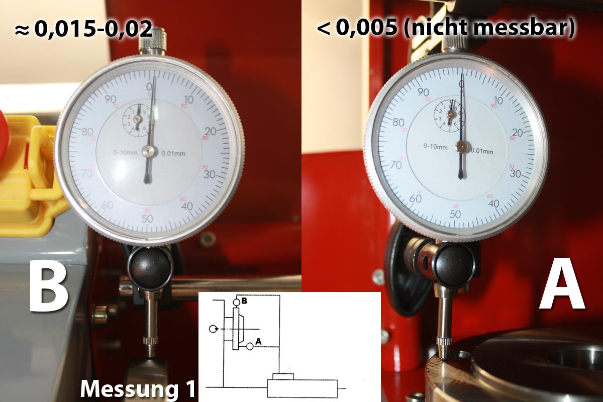 denn einmal hat der Flanschbund der Drehspindel 2/100 Rundlauftoleranz und ein weiteres mal 15/1000.