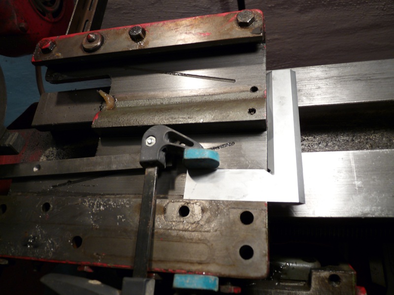 Jetzt habe ich den Winkel angelegt(Drehbankbett gegen Schlosskasten), die Keilleisten eigestellt und bin immer wieder vorsichtig auf den Winkel zugefahren, bis das Bild dann entstand, also kein Spiel, Rechtwinkligkeit zum Drehbankbett und der Schlosskasten-Schlitten lässt sich noch fahren.