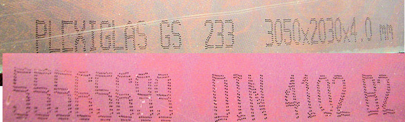 Ein Bild mit der Plexi-Bezeichnung, sie ist auf der Schutzfolie drauf.