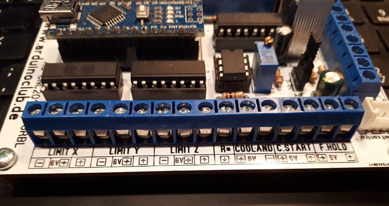 Genaugenommen benötige ich 3 Steppermotorenanschlüsse, einen Anschluss für die Tastplatte, einen korrekten Anschluss für den Notausschalter, einen Spindelanschluss mit der Möglichkeit diese anzusteuern bzw. zu regeln, wobei letzteres eher ein nice to have ist.