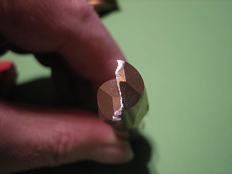 der Fräserdurchmesser war 14mm und die Drehzahl 500/min. Ich habe mal die Schneiden der beiden Fräser photographiert. Sie sind beide nicht mehr zu verwenden.