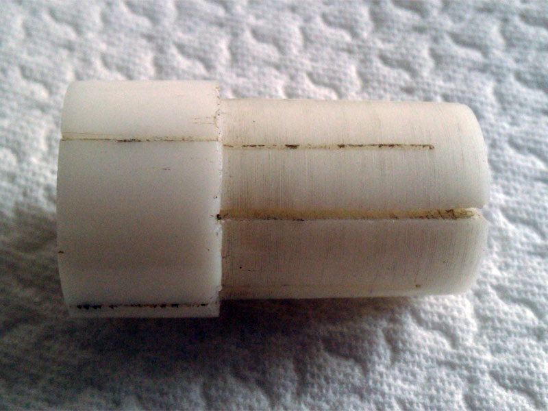 Hier ist ja schon etwas darüber gesagt worden das die Oberteile konisch sind und daher hatte ich mir überlegt die Collets nicht wie bei dem ersten Bild einfach zu schlitzen sondern vierfach über Kreuz und das von beiden Seiten.