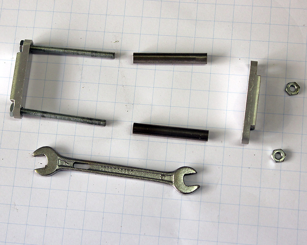 Die Innenteile sind Distanzrohre aussen 6 mm innen 4 mm, auf der Drehe gebohrt.