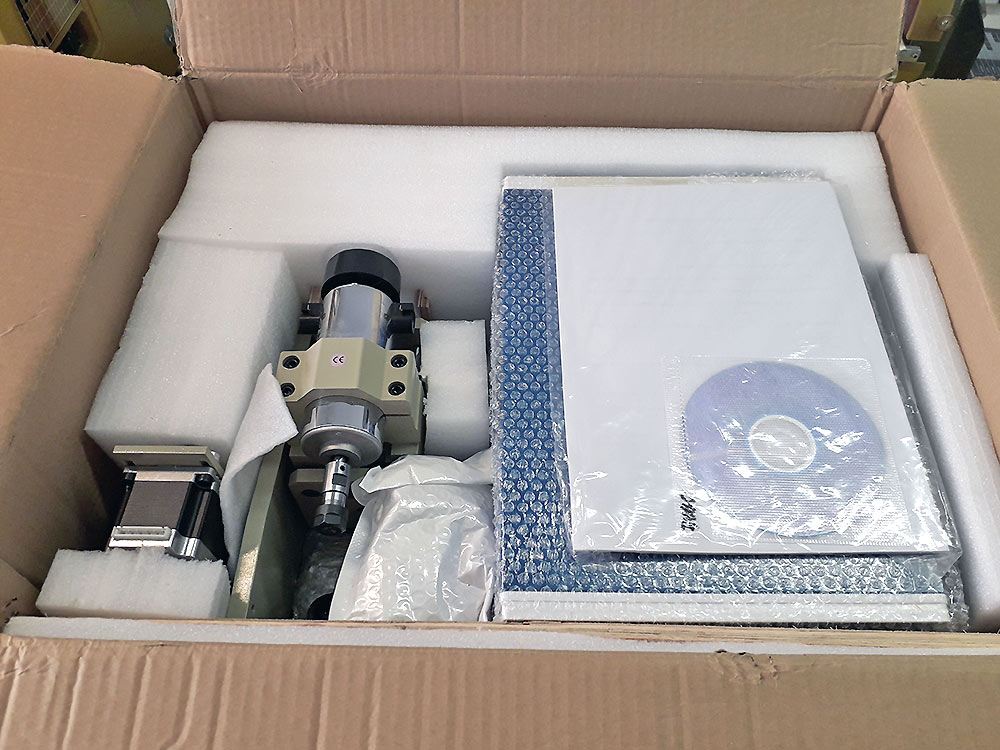 Der erste Eindruck war sehr gut auch die Verpackung ließ keine Wünsche offen. Dann war das erste Hindernis zu meistern, die Maschine wurde ja in 2 Pakete angeliefert, in einem der fertig vormontierte Tisch und in der Anderen Box war das Portal samt Spindel.