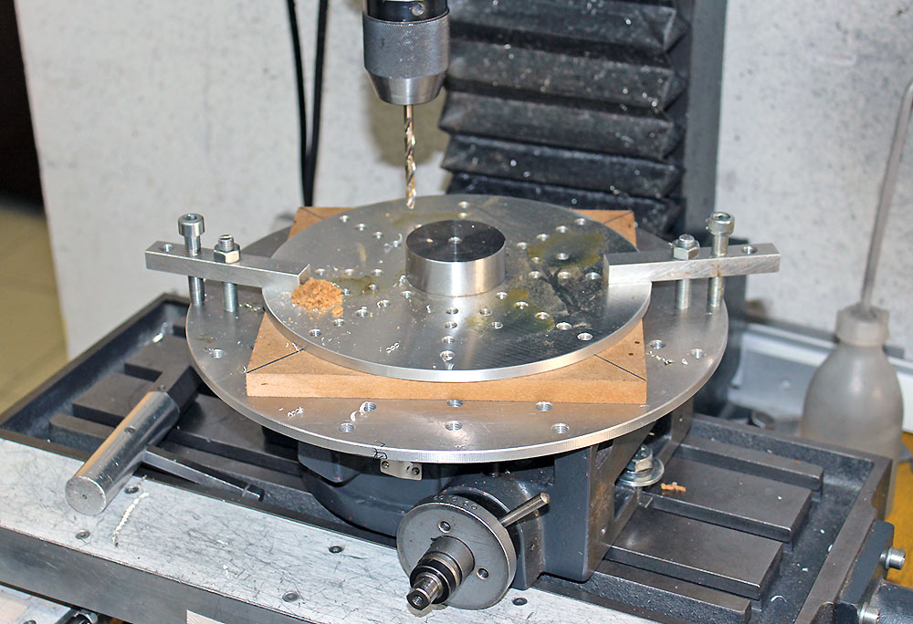 Nach dem Drehen am Rundtisch die Bohrungen fertigen.....