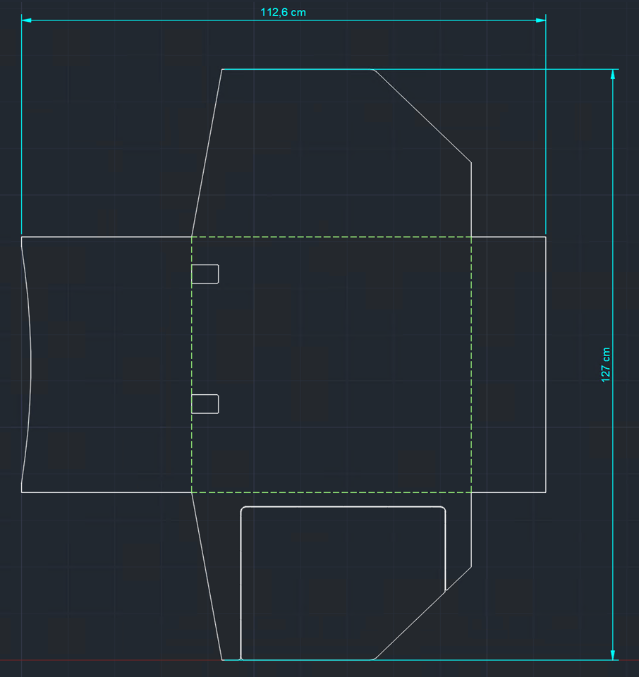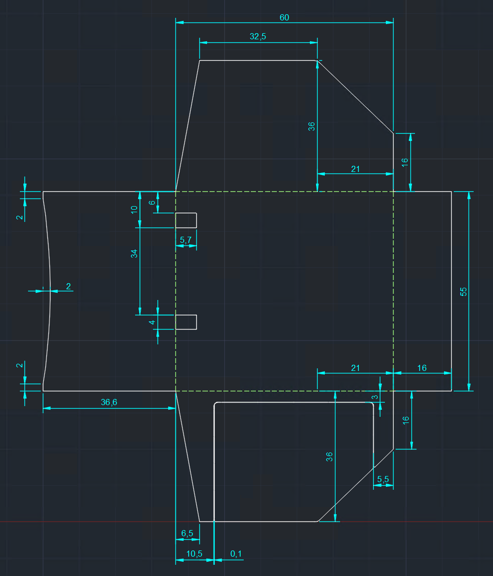 6. Auf der Unterseite am Plan ist auch eine "Tür" zu sehen. Das heißt ich würde auch den herausgeschnittenen Teil verwenden wollen. Dies wäre wahrscheinlich beim Laser-Cut ein Problem. Deshalb habe ich den Teil mit 0.1 mm x 0.1 mm Rechtecken verbunden. Wäre das so korrekt, oder macht man das anders?
